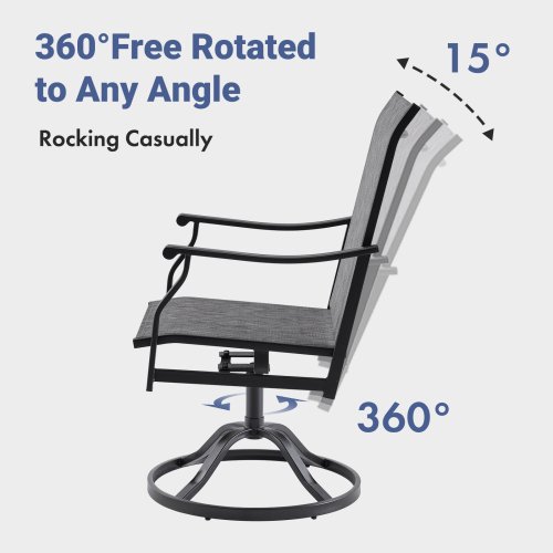 - [360°SWIVEL DINING CHAIRS]: This patio dining chair offers smooth 360° rotation, providing exceptional flexibility and comfort. Perfect for enjoying outdoor meals, chatting, or relaxing with family and friends, offering convenience from any direction.