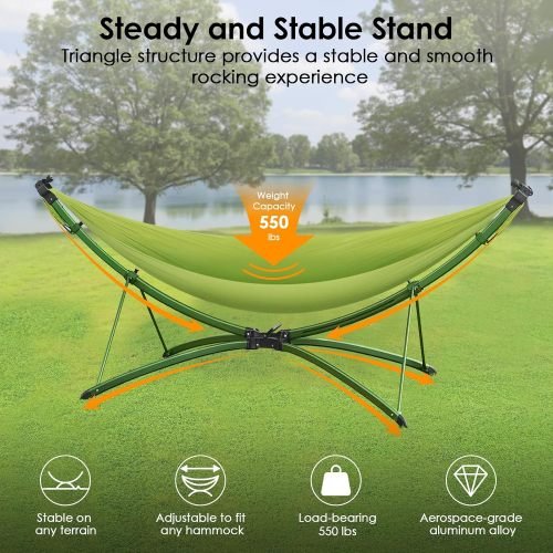 • Steady as a rock, conquering varied terrain: Built with a sturdy frame and durable materials, our hammock stand provides reliable support on sand, grass, gravel, or even uneven rocky surfaces. Wide support feet effectively distribute pressure to prevent sinking, letting you relax in the gentle sway wherever you choose—terrain challenges be damned.