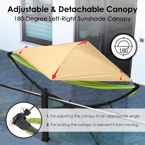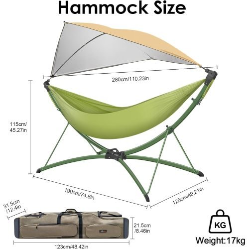 Product Name:Portable Outdoor/Garden Hammock with Quick-Fold Stand, Adjustable Sunshade, and Storage Bag Adult/Child Hammock Chair Heavy-Duty Hammock Suitable for Camping, Home Gardens, Hotels, Outdoors, Beaches,